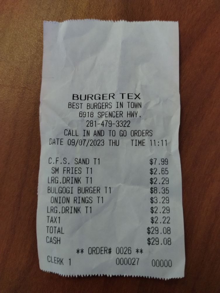 Burger Tex, located at 6918 Spencer Hwy Pasadena, TX 77505, is a casual yet classy burger joint that offers a variety of delicious options. Customers rave about the well-cooked burgers with fresh buns and generous toppings. The standout Bulgogi Burger is juicy and flavorful, while the daily specials offer affordable combos with fries and a drink. The menu allows for customization, so you can build your burger just the way you like it. The welcoming staff ensures a pleasant dining experience, making it a great spot for lunch with coworkers or a quick bite to eat. With options for vegetarians and a well-stocked salad bar, Burger Tex promises a satisfying meal every time. Overall, this no-frills establishment delivers on its promise of tasty, home-cooked burgers in a cozy atmosphere.